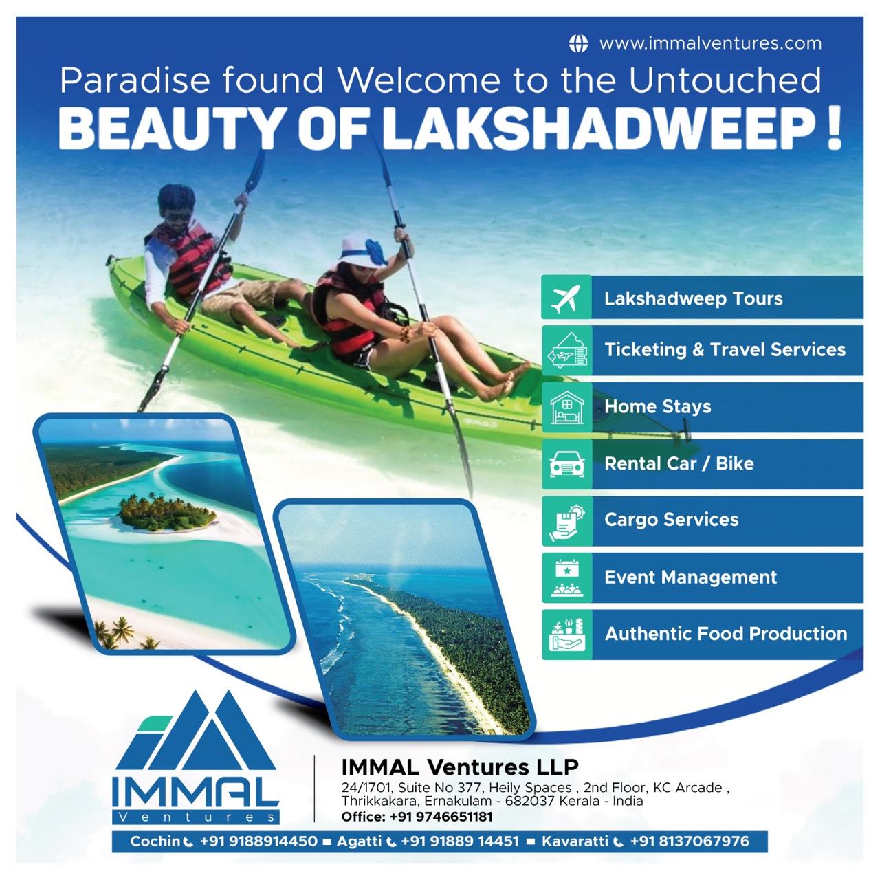 IMMAL ventures LLP formed by a group of like minded professionals who looks forward for the development of Lakshadweep islands and elevating the beauty of coral paradise to a global destination. Providing locals of Lakshadweep with job opportunities and bringing there authentic food products to make a place in the global market .